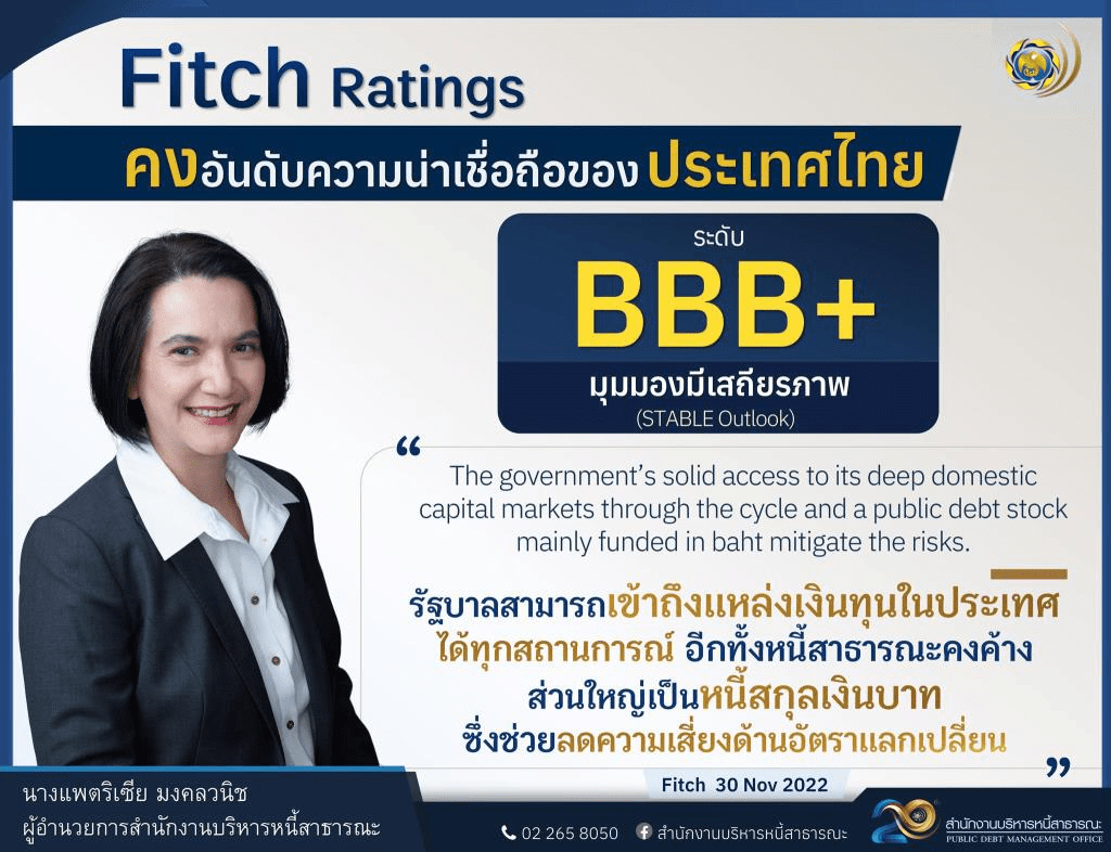 Die Beibehaltung des Fitch-Ratings ist für das Königreich wichtig, da thailändische Staatsanleihen mit BBB+ nach den Einstufungen der jeweiligen Rating-Agenturen als Investment und nicht als spekulativ gelten.