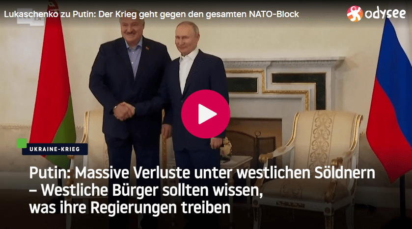 Lukaschenko und Putin haben eine Zwischenbilanz zum Ukraine-Krieg gezogen. Die ukrainische Gegenoffensive sei gescheitert und habe schon weit mehr als 26.000 Mann an Verlusten gebracht. Auch gebe es erhebliche Opferzahlen aufgrund von Dummheit unter den ausländischen Söldnern, so der russische Präsident Wladimir Putin bei einem Gespräch mit seinem weißrussischen Amtskollegen Alexander Lukaschenko am Sonntag in Sankt Petersburg. Es sei wichtig, dass die Bürger in den westlichen Ländern darüber Bescheid wissen, was ihre Regierungen in der Ukraine treiben, so Putin in Bezug auf die ausländischen Söldner in der Ukraine.