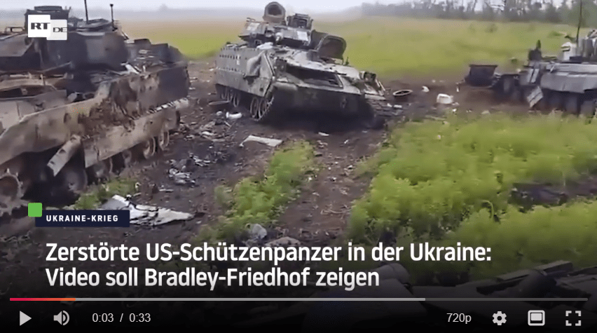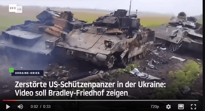 Die hochgepriesenen westlichen Waffenlieferungen werden offenbar ebenfalls in hoher Anzahl zerstört. Lukaschenko sprach davon, dass allein bei einem Gefecht 15 Leopard-Panzer und über 20 US-Bradley-Schützenpanzer zerstört worden seien. In Reaktion darauf sagte der russische Präsident: