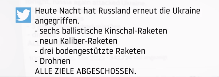 Die luftgestützten ballistischen Raketen Typ Kinschal schalteten vorwiegend ukrainische Luftabwehrsysteme aus.