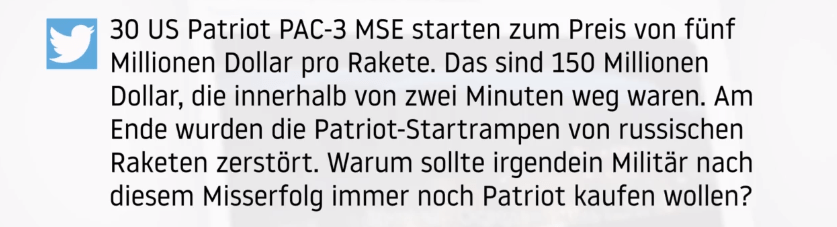 Das Patriot-System ist ein kostenintensives, stationäres Modell, das durch viele Arten von Raketen oder sogar einen Drohnenschwarm im Wert von wenigen Zehntausenden US-Dollar verwundbar ist.