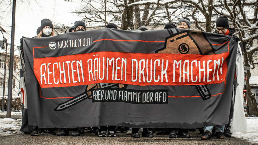 „Es gibt derzeit eine anlaufende Debatte um die Forderung eines AfD-Verbots. Lasst uns der AfD jedoch vorallem auf militanter Weise begegnen, ihnen das Leben zur Hölle machen und zeigen, was wir von ihrer menschenverachtenden Politik halten. Ob das der antifaschistische Hausbesuch, die Zertsörung von Wahlkampfständen oder die klassische Konfrontation mit Politiker der Partei bedeuten – wir freuen uns über jede sinnvolle Intervention! Viel Spaß beim Lesen.“