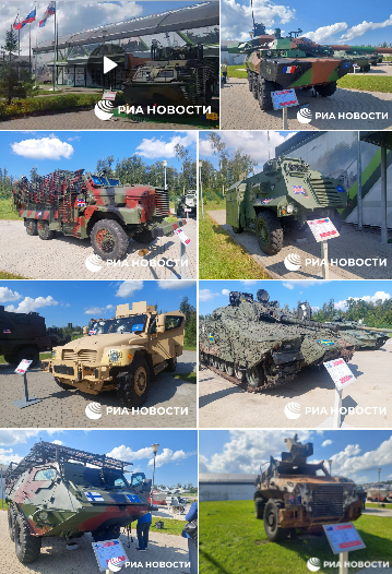 Nach Angaben russischer Medien wird auf der Waffenmesse auch westliche Technik demonstriert, die während der Spezialoperation in der Ukraine erbeutet wurde. In der Ausstellung sollen mehrere Muster gepanzerter Fahrzeuge, darunter Infanterie-Kampffahrzeuge, gezeigt werden.
