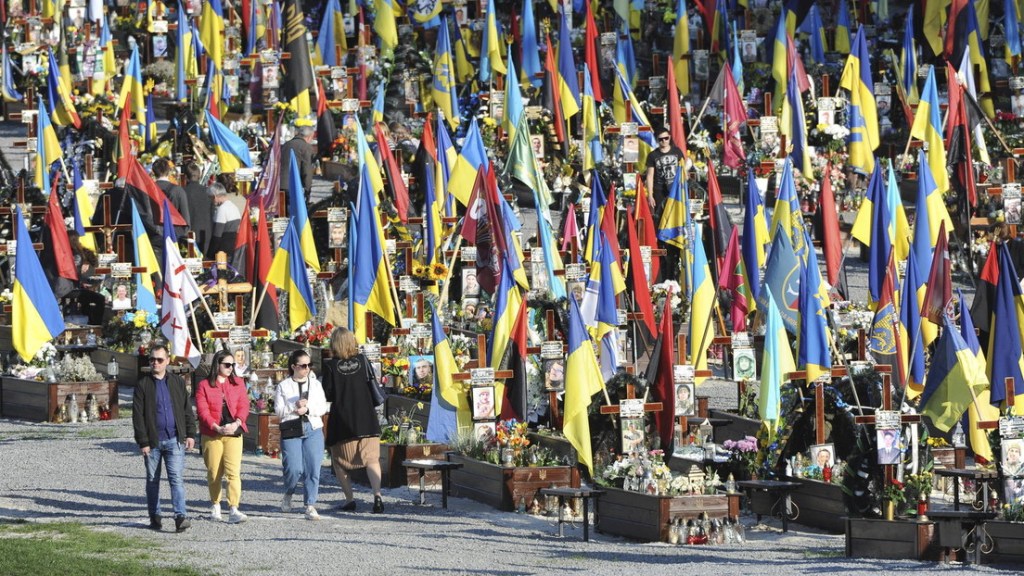 „Wenn man die wachsende Zahl der Toten an den schnell wachsenden Friedhöfen ablesen kann, dann wird die Zahl der verwundeten Soldaten durch die Informationen aus den Krankenhäusern bekannt. Jeden Freitag kommen sieben Züge mit schwer verletzten Soldaten in Kiew an. An anderen Tagen sind es jeweils vier Züge. Davon berichten die Mitarbeiter der Militärkrankenhäuser.“