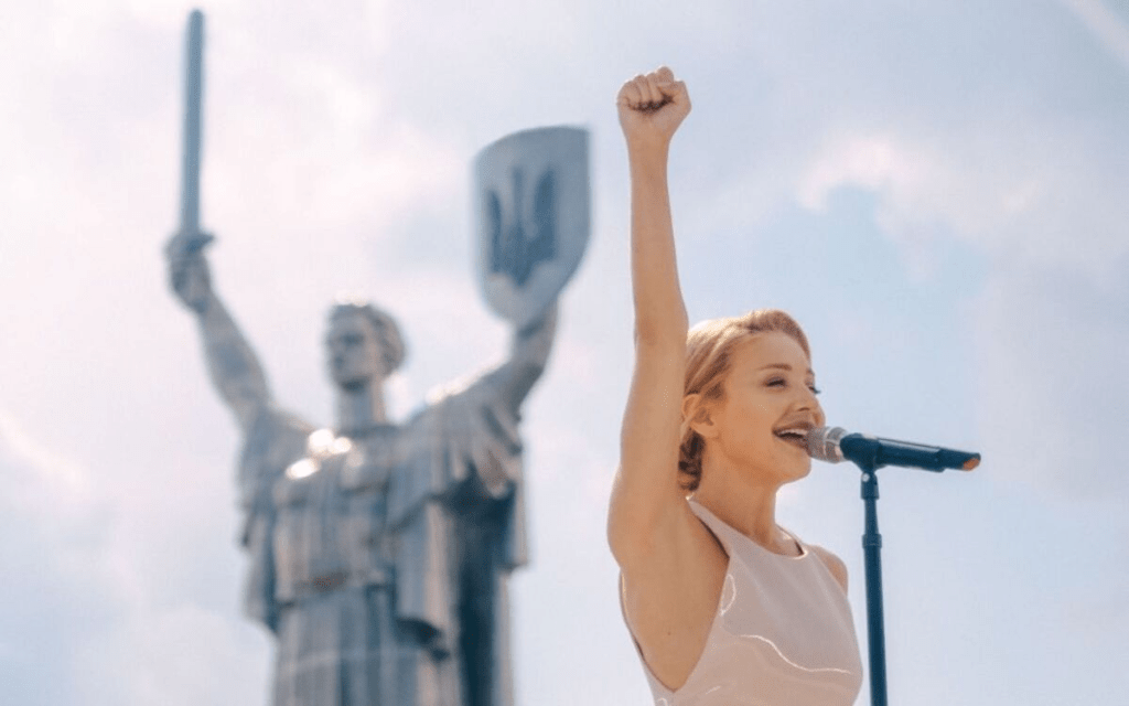 Pünktlich zum Tag der Unabhängigkeit am 23. August hat die ukrainische Popsängerin Tina Karol ihren neuen Song „One Nation under Love“ veröffentlicht. Das Lied ist eine Gemeinschaftsproduktion mit der US-Komponistin Diane Warren, die Hits für Whitney Houston, Cher, Celine Dion, Lady Gaga und weitere Mega-Stars der Pop-Szene geschrieben hat. Das dazugehörige Musikvideo zeigt die Sängerin vor dem Kiewer Wahrzeichen Mutter-Ukraine (ehemals Mutter-Heimat) in einem taillenbetonten Prachtkleid singend, während die Komponistin vor der Freiheitsstatue in New York Piano spielt.
