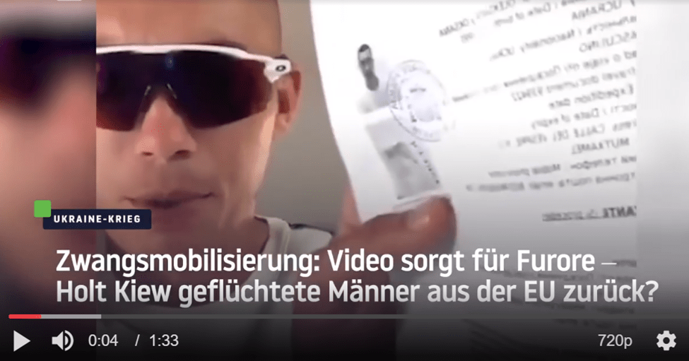 In den sozialen Medien macht ein Video die Runde, das einen Ukrainer im wehrpflichtigen Alter zeigen soll, der in die EU geflüchtet ist. Darin behauptet der Mann, ein Schreiben erhalten zu haben, wonach die ukrainischen Behörden ein Ersuchen zu seiner Person gestellt hätten. Er habe nun zwei Wochen Zeit, um die EU zu verlassen und in die Ukraine zurückzukehren.