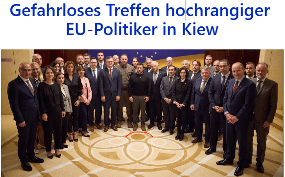 Aus Sicherheitsgründen war das Treffen im Vorfeld nicht angekündigt worden. Offensichtlich erlaubt die Sicherheitslage in der ukrainischen Hauptstadt ein gefahrloses Treffen hochrangiger EU-Politiker.