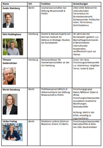 Expertenliste Hamas/Eskalation Naher OstenStand: 13.10.23,