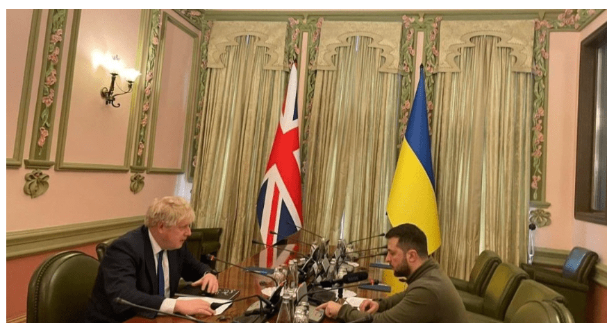 Boris Johnson kam Anfang April vergangenen Jahres nach Kiew und traf sich am 9. April 2022 mit Wladimir Selenskij.