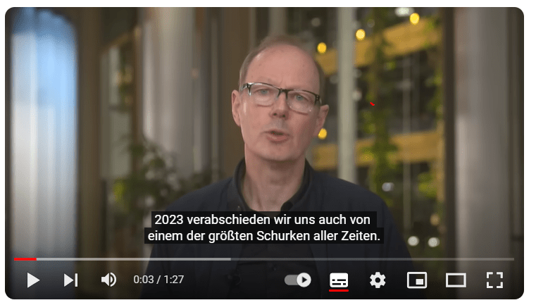 „2023 verabschieden wir uns auch von einem der größten Schurken aller Zeiten. Nach 100 Jahren ist Schluss – der ehemalige US-Außenminister Henry Kissinger ist tot. Mit ihm starb nicht nur einer der besten Kriegsverbrecher aller Zeiten – nämlich er selber – sondern auch – noch vor Barack Obama und der Europäischen Union – einer der unwürdigsten Friedensnobelpreisträger aller Zeiten, –– auch er selber.