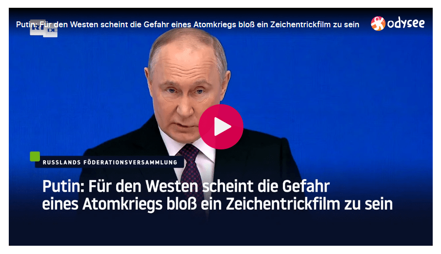 https://odysee.com/@RTDE:e/Putin–F%C3%BCr-den-Westen-scheint-die-Gefahr-eines-Atomkriegs-blo%C3%9F-ein-Zeichentrickfilm-zu-sein:3?src=embed