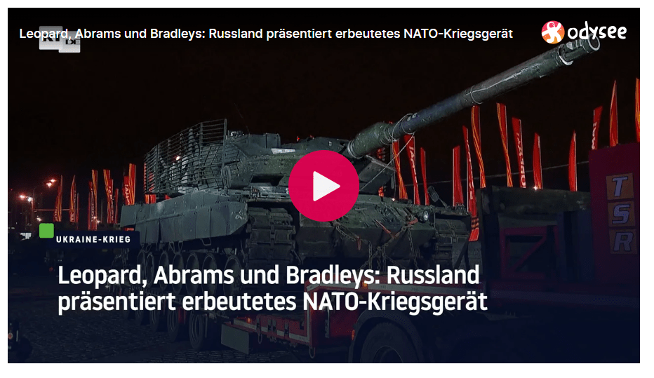 Natürlich waren die deutschen Medien, welche die Leopard-Lieferung an die Ukraine bejubelt hatten, von der Trophäen-Ausstellung wenig begeistert. So versuchten sie, wie Der Spiegel in einem Video, die Ausstellung ins Lächerliche zu ziehen. „Putins Propaganda-Show kommt beim Putin-treuen Publikum gut an“, kommentiert das Medium in Heute-Show-Manier. Darüber hinaus wird über die nach unten gebogene Leopard-Kanone gespottet. Also würden sie in Moskau lieber eine stolz erhobene deutsche Kanone sehen ‒ entlarvend!