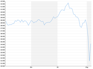 Ein wichtiger Indikator, der VIX-Index (Angstindex), ist Anfang dieser Woche sprunghaft auf 37 gestiegen und damit ungefähr dreimal so hoch wie Mitte Juli, als er bei 13 lag.