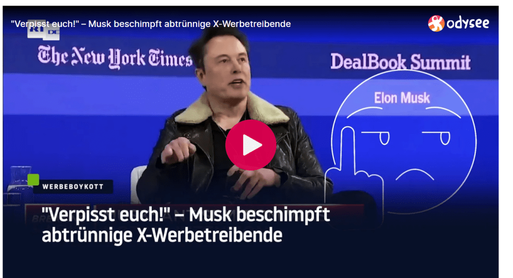 https://odysee.com/@RTDE:e/-Verpisst-euch!–%E2%80%93-Musk-beschimpft-abtr%C3%BCnnige-X-Werbetreibende:0?src=embed
