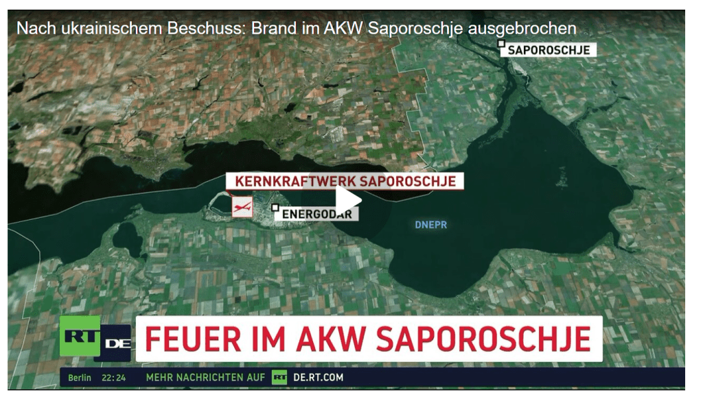 „Nach Ansicht der ukrainischen Seite sollte das Vorgehen der ukrainischen Streitkräfte, bei dem das Atomkraftwerk Saporoschje von der externen Stromversorgung abgeschnitten wird, in Russland eine ganze Reihe von Emotionen auslösen. Vor allem soll Panik ausgelöst und die Zustimmung zu einseitigen Zugeständnissen bewirkt werden.“