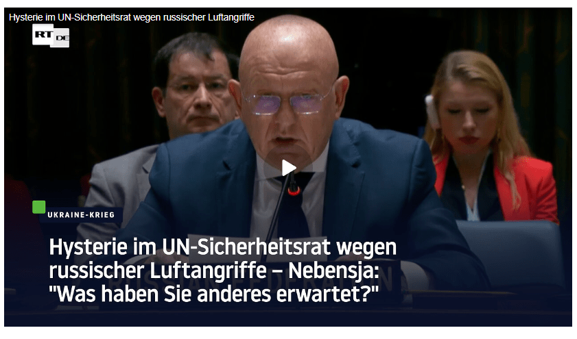 Nebensja begründete die „Hysterie“ im UN-Sicherheitsrat damit, dass Russland Kiew in den letzten Tagen tatsächlich „sehr schmerzhafte Schläge“ versetzt hätte und fragte: „Was haben Sie anderes erwartet, als Kiew das Abenteuer Kursk Friedensgesprächen vorzog?“