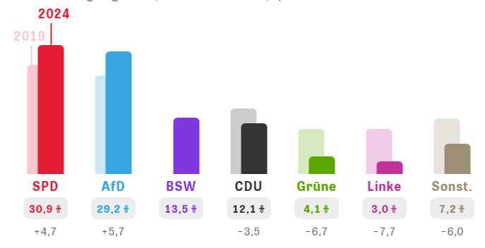 Vor drei Wochen hatte die AfD bereits bei der Landtagswahl in Thüringen eine Sperrminorität errungen.