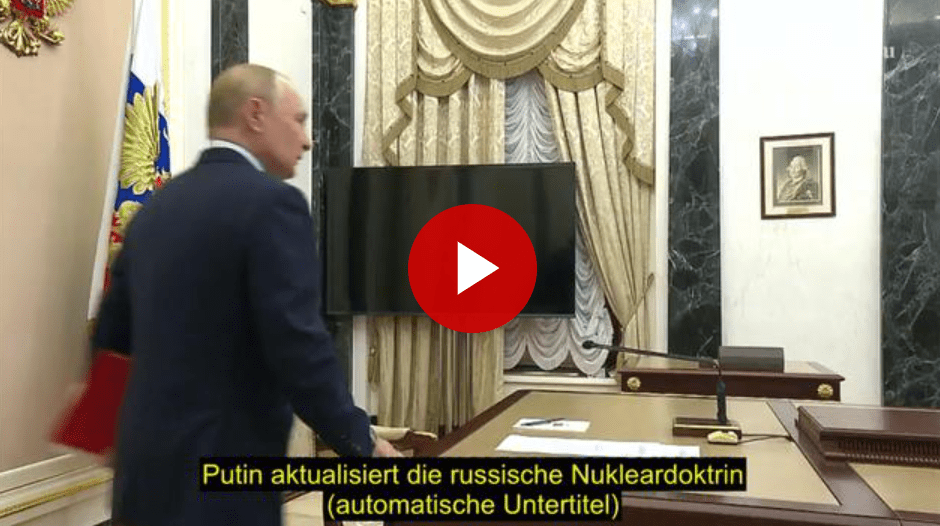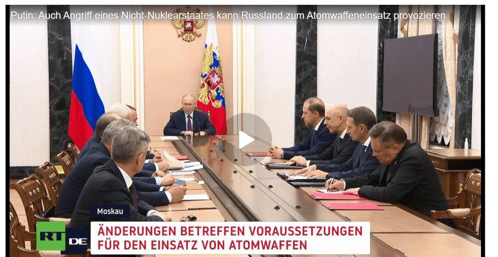 Der russische Präsident Wladimir Putin hat auf der Sitzung des Russischen Sicherheitsrates die Änderungen der russischen Nukleardoktrin verkündet und die Liste der Bedrohungen aktualisiert. Von nun an kann auch ein Angriff mit Nicht-Nuklearwaffen gegen Russland eine russische nukleare Antwort zur Folge haben.