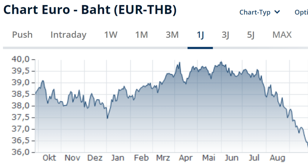 Der Vorteil besteht darin, dass der Ölimport Thailand weniger kostet. Die jährlichen Ölimporte Thailands werden auf 1,5 Billionen Baht geschätzt, doch verglichen mit den Einnahmen aus dem Tourismus von 1,7 Billionen Baht und den Gesamtexporten im Wert von etwa 1,9 Billionen Baht jährlich, merkte Naris an, dass Thailand durch eine stärkere Währung mehr verliert als gewinnt.
