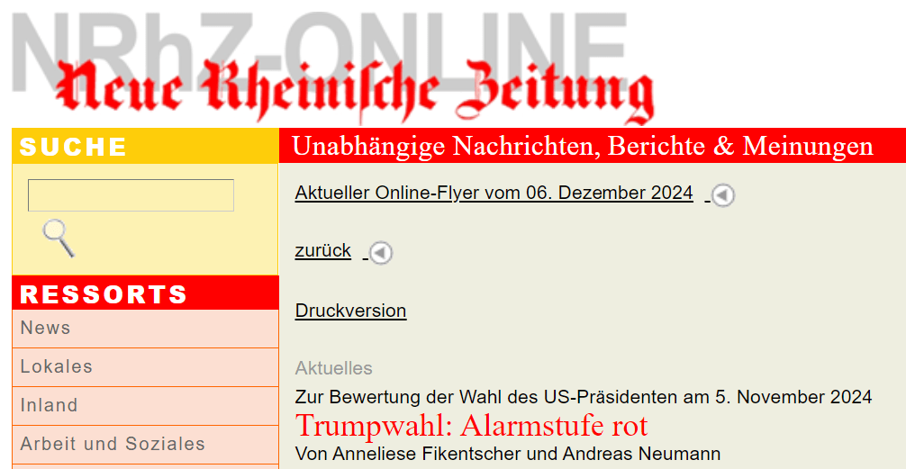 Diese Kreise haben Alarmstufe rot ausgerufen. Das zeigt sich an Organen wie DIE ZEIT, Frankfurter Rundschau und vor allem „der Freitag“. Deshalb die Warnfarbe rot auf ihren Titelseiten. Trump bedeutet für sie das Durchkreuzen der Strategie, die Welt über die Konfrontation mit Russland in einen profitträchtigen, ihren Machtbereich erweiternden Krieg zu führen.