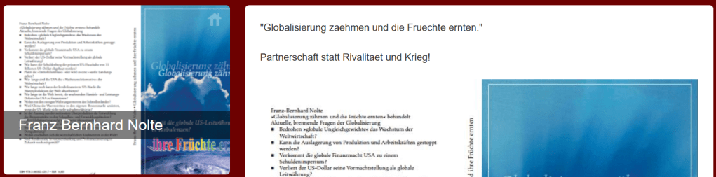 Globalisierungskritik und Vorfahrt auf dem freien Weltmarkt gepaart mit Heimatschutz und Kampf gegen den internationalen Terrorismus eignet sich gut für Chauvinismus und Nationalismus. Der Weltfriede, der äußere Friede zwischen den Völkern kann empfindlich gestört werden. Wichtiges Ziel muß es sein, eine Welt in Harmonie nach innen und außen zu schaffen.