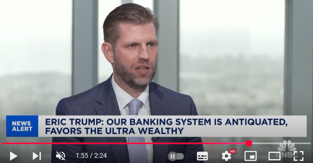 Eric Trump: „Wenn Banken nicht aufpassen, was auf sie zukommt, sind sie in zehn Jahren ausgestorben.“