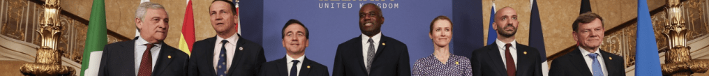 Außenminister Italiens, Polens, Spaniens, Großbritanniens, Deutschlands und Frankreichs sowie die EU-Außenbeauftragte während ihres Treffens in London am 12. Mai 2025
