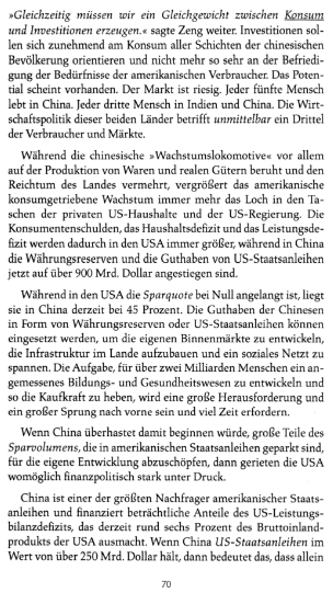 „Wie ein Nobelpreisträger sagte, herrscht in der amerikanischen Arbeiterklasse eine tiefe Verzweiflung. Die amerikanische Demokratie steht vor ernsthaften internen Herausforderungen. Deshalb ist es angesichts so vieler interner Herausforderungen so unklug, sich jetzt auf einen großen geopolitischen Wettstreit mit China einzulassen. Dieser hat sich übrigens in die entgegengesetzte Richtung entwickelt, denn China hat sich gewandelt und ist heute die größte Meritokratie der Welt. Was ist eine Meritokratie? Eine Meritokratie ist ein System. Man versucht, die Besten und Klügsten für die Führung der Gesellschaft auszuwählen. Das zeigt sich in der Leistungsfähigkeit der Gesellschaft. Und falls Sie Zweifel daran hatten, dass China inzwischen eine viel leistungsfähigere Regierung entwickelt hat als die der Vereinigten Staaten, so wurde dieser Beweis durch Covid erbracht“.